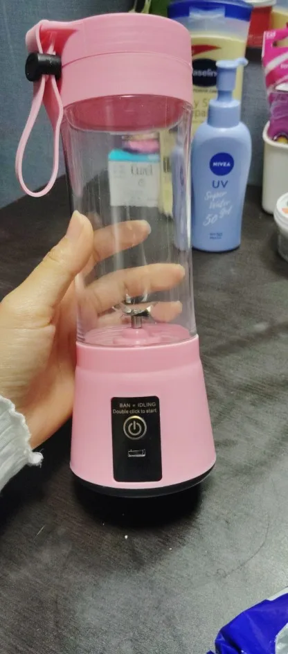 Blend smoothies anywhere with this portable USB rechargeable blender. Six sharp blades, powerful motor, easy to clean, and perfect for travel, gym, work, or home.