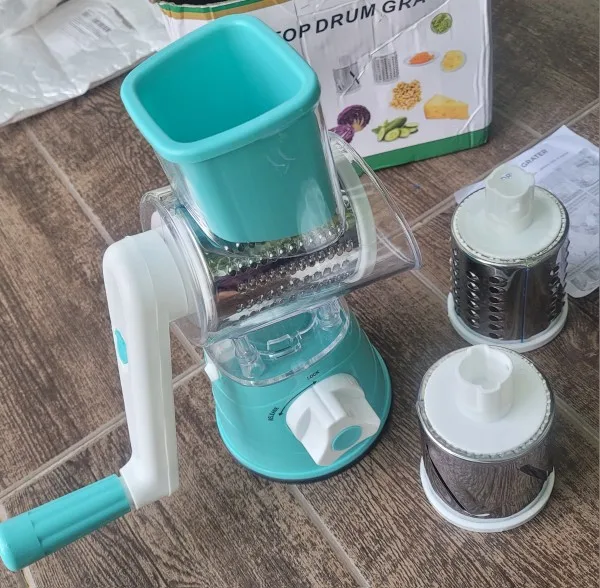 Round Mandoline Vegetable Cutter – 3-Blade Rotary Slicer & Shredder for Easy Meal Prep